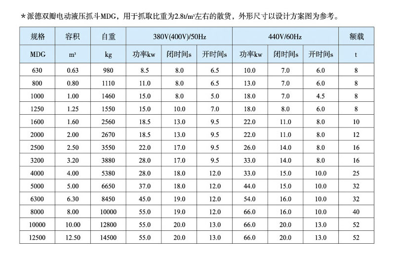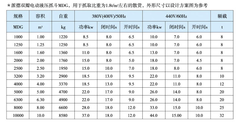 電動(dòng)液壓抓斗是一種自帶電機(jī)、液壓泵等液壓系統(tǒng),并通過外部電源驅(qū)動(dòng)實(shí)現(xiàn)開閉的的抓斗。抓斗依靠電機(jī)的正反轉(zhuǎn)或者液壓換向閥來控制抓斗的開閉。電動(dòng)液壓散貨抓斗是一種能在各種惡劣環(huán)境下從事黃砂、煤炭、礦粉、礦石、水泥等散貨裝卸的有效工具。抓斗自帶液壓系統(tǒng),液壓系統(tǒng)的閥組、密封件、閥塊等主要元件均采用歐美品牌。液壓泵采用恒功率泵,并采用液壓伺服系統(tǒng),系統(tǒng)壓力變化可有效控制泵的輸出。當(dāng)達(dá)到最大壓力的時(shí)候,泵的流量極低,從而大大減少了溢流,降低了能耗,降低了油溫,以利用長時(shí)間連續(xù)工作,大大提高了生產(chǎn)效率。抓斗結(jié)構(gòu)簡單,操作方便,能在各種惡劣環(huán)境下工作。獨(dú)特的顎瓣曲線特別有利于各類散貨的裝卸,抓斗上部設(shè)有電纜線接口,便于與起重機(jī)的聯(lián)接。